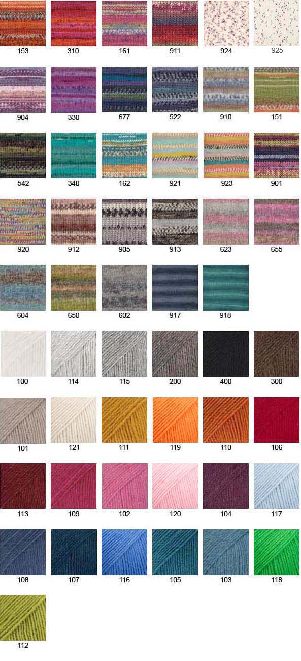 75% Superwash Wool, 25% Polyamid A great sock yarn available with Garnstudio. A pattern appears in the garment as you knit. A large range of solid and self-striping colours to choose from, each with their own eye-catching patterns. Machine wash on delicates, iron on medium heat. Do not tumble dry or bleach. For free patterns for Fabel, visit www.garnstudio.com. |