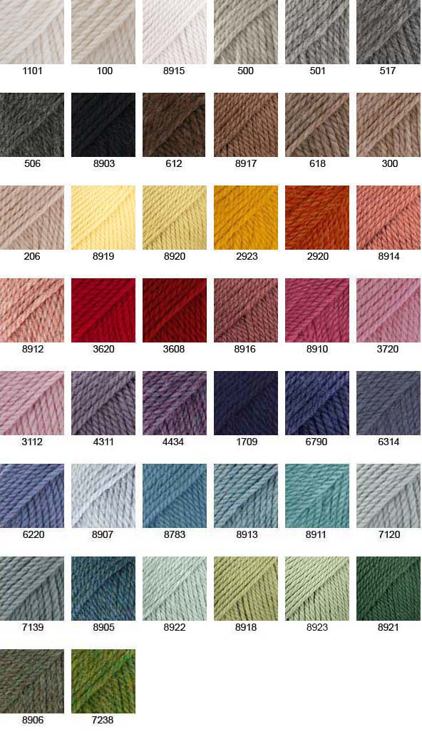 65% Wool, 35% Alpaca Nepal is a soft, warm blend, with the lightness of alpaca. It is also ideal for felting. For free patterns for Nepal, visit www.garnstudio.com. |