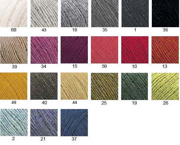 100% Wool Tynd is a pure wool with a rustic feel. Easy to knit with and very durable. A great colour range with heathered shades. It can be felted. |
