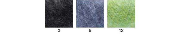 80% kid mohair, 20% polyamide A light an delicate yarn that can be paired with other yarns or stand on it's own. A unique effect with the base thread undyed, left either black or white, depending on colour. Hand wash. |