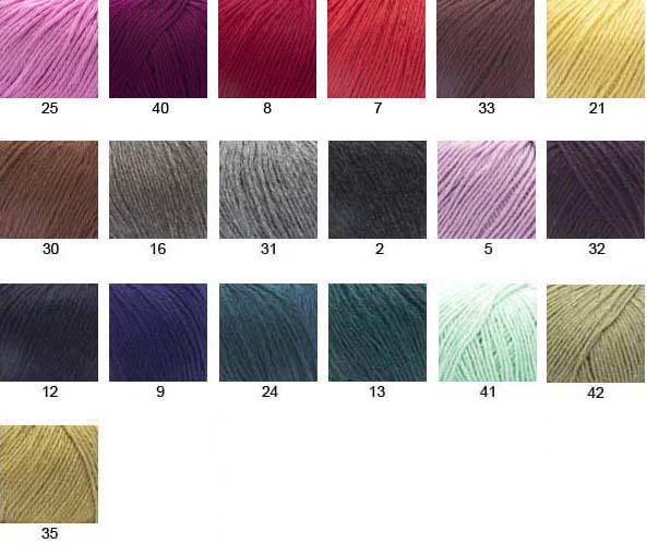 37% wool, 30% viscose, 20% polyamide, 8% angora, 5% cashmere This yarn has many fibres, and many uses! Very soft, a hint of melange, light and supple to knit. A unique yarn that will win you over. Hand wash. |