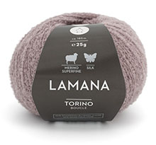 80% superfine merino, 20% silk Another Superlight yarn from Lamana, in a boucle! Torino is light, soft and versatile. Perfect for both accessories and garments, knit alone or with a fine mohair like Premia. By using a special carding process Lamana's Superlight yarns receive a unique lightness and become super soft. Knitted items weigh only half as usual and offer an incomparable airy wearing comfort. |